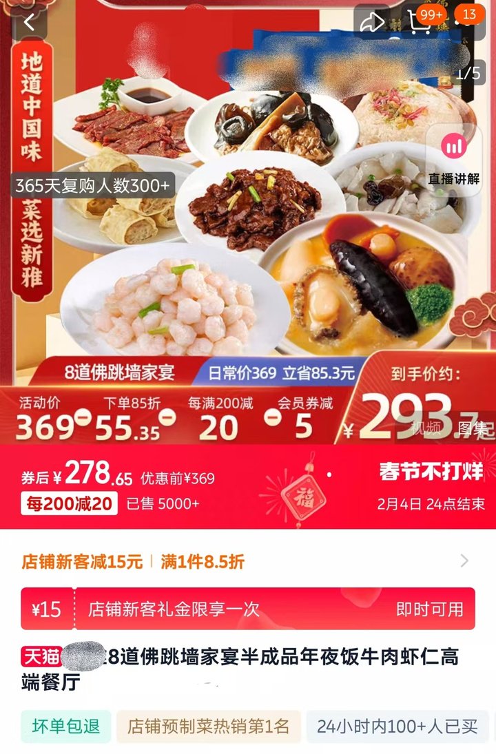 电商平台:三百元不到 8 个菜的预制年夜饭热销