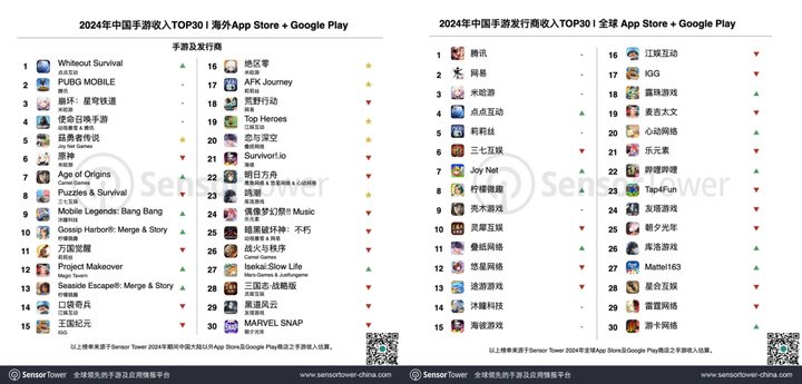 1 月 24 日,机构 Sensor Tower 公布了 2024 年中国手游出海收入榜与刊行商收入榜。