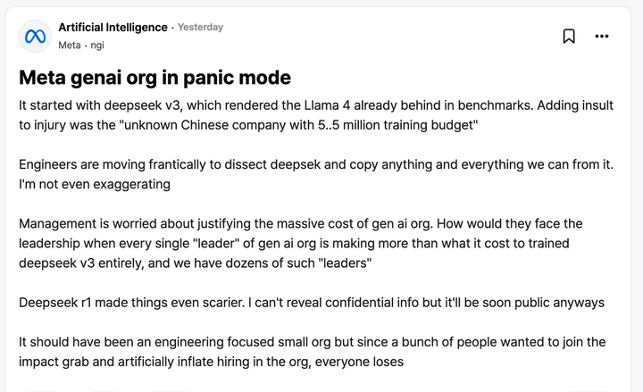 DeepSeek 低成本考验并开源,Meta 堕入惊骇