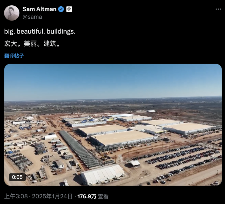 1 月 24 日,OpenAI CEO Sam Altman 在个东说念主外交账号公布了星门狡计首期基地中心。