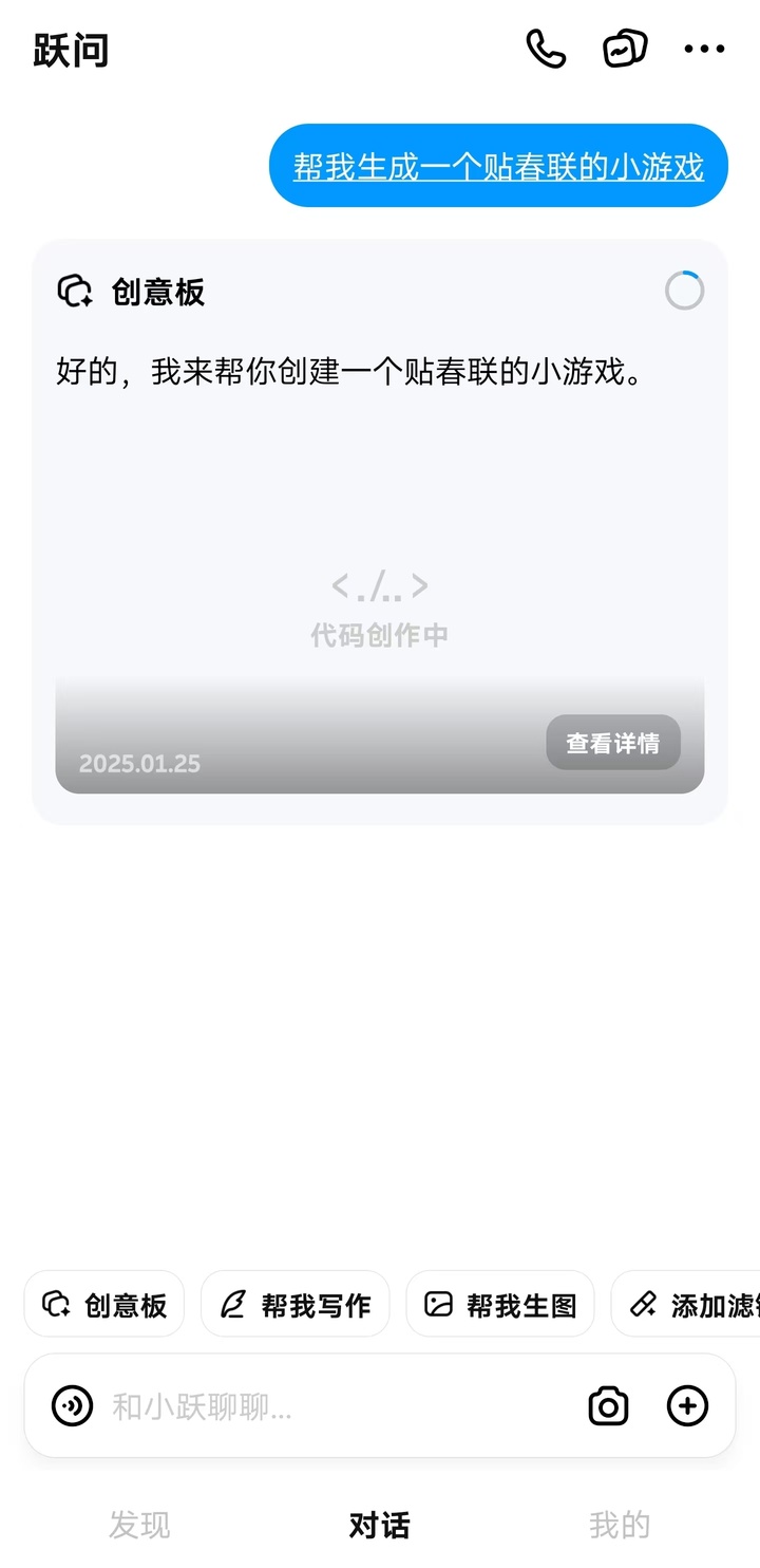 1 月 24 日,阶跃星辰通知,旗下跃问 App 推出「跃问 AI 创意板」,并示意把应用开发的门槛降到最低。