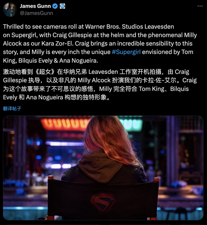 1 月 24 日,DC 责任室联席 CEO 兼新《超东说念主》电影导演 James Francis Gunn Jr. 发布了电影《超等仙女:明日之女》首张片场照。
