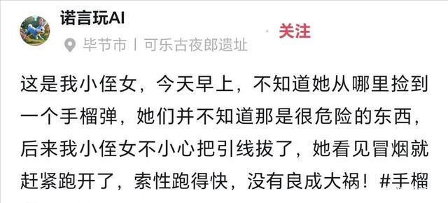 还有网友褒贬称,小女孩命真大,好在往家跑,如果莫得跑,这个手榴弹爆炸后,这个小女孩会怎样样? 当今要害是这颗手榴弹到底从那里来的?是不是还有其它的手榴弹莫得找到呢?这也许便是往常搏斗年代留传的东西被孩子给找到了, 提出一定要查,不然若是再有一个手榴弹,一朝爆炸,可能就莫得那么好的运谈。