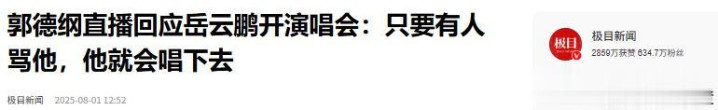 郭德纲直播回复岳云鹏开演唱会:惟有有东谈主骂他,他就会唱下去