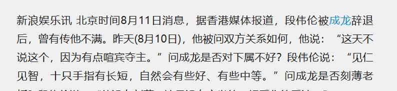 不外多年以来,港媒照旧以为是成龙的原因导致段伟伦离开演艺圈。