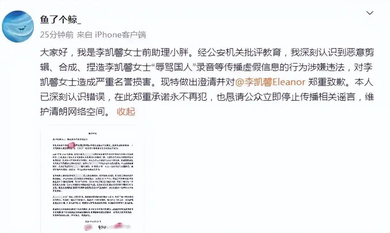 诚然几个月后事情出现了大回转,那位助理承认灌音是我方坏机杼剪,李凯馨责任室也晒出了法院的胜诉判决。