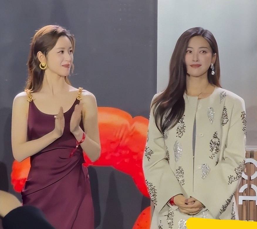 31岁的章泽天身穿Bottega Veneta酒红色吊带长裙,搭配金色圆环耳环,皮肤白嫩,整个这个词东谈主贵气又明艳。41岁的朱珠则选择了米白色亮片外衣配裙子,大海潮长发披肩,优雅大气又知性。