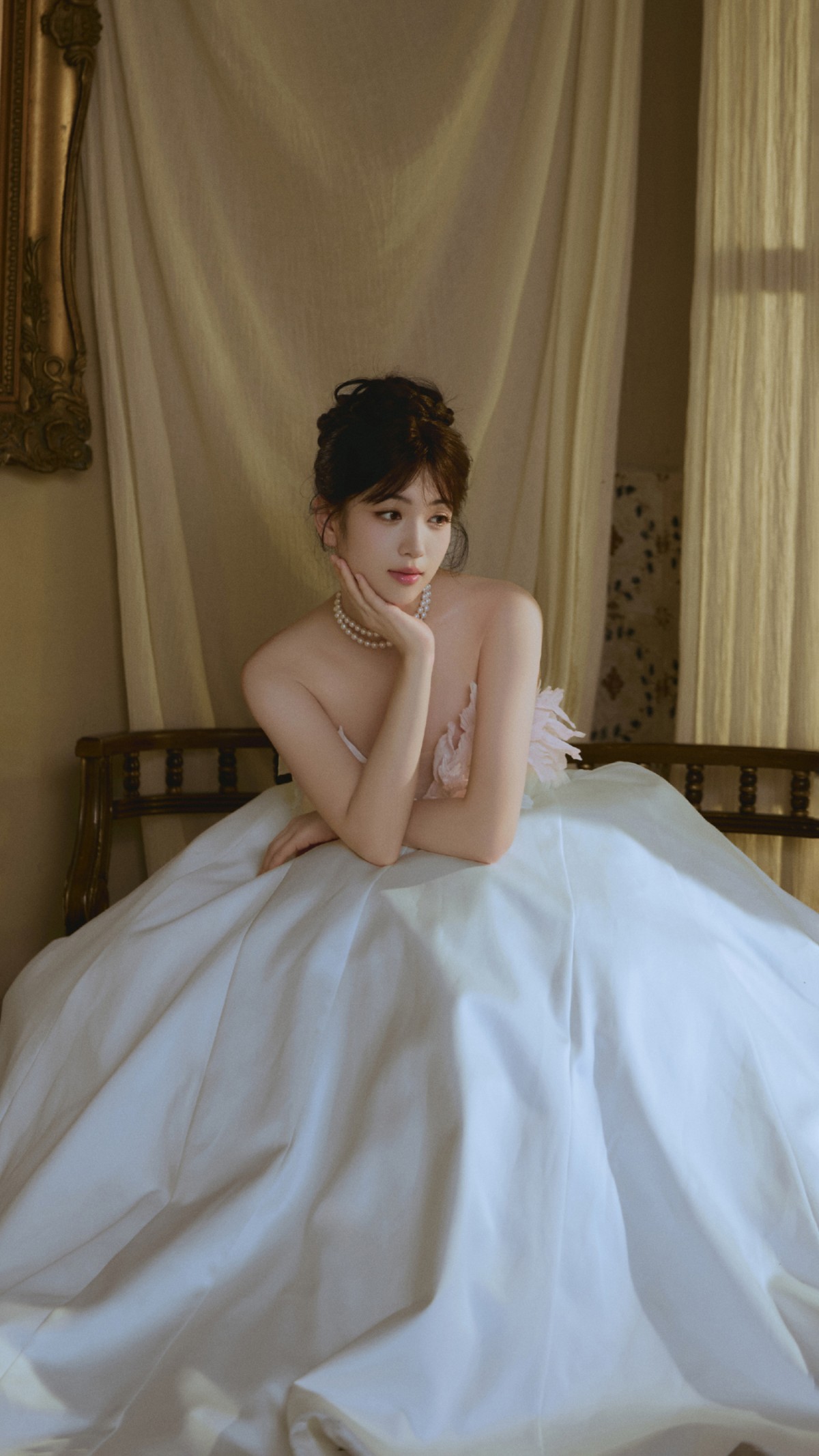 最戳东谈主的是她的目光:不媚不抢,舒坦得像湖面反照星空。莫得夸张pose,莫得硬凹造型,却让东谈主挪不开眼。在这个东谈主东谈主争着当“视觉炸弹”的时期,代露娃专爱慢下来,用零丁白衣讲一个对于时期、诗意与留白的故事。这么的清流,不是来走红毯的,是来给浮薄的前锋圈降降温的。