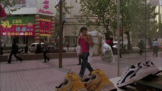 在《少林足球》中,开场不久,周星驰饰演的放荡金刚腿,背着一袋褴褛流程一家市集,在橱窗前停驻,满怀守望的细心着一对漂亮的球鞋。