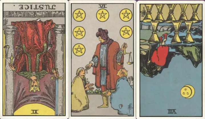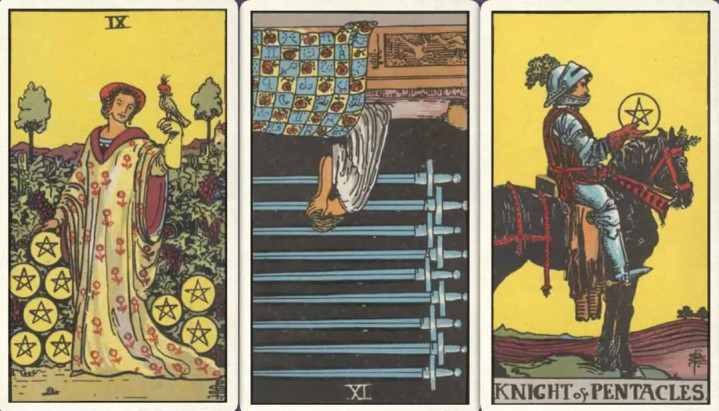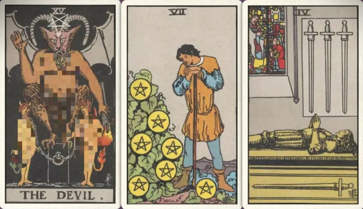 上半年:宝剑五- 圣杯十+ 圣杯四-