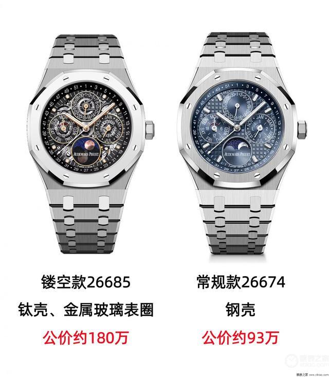 爱彼新一代皇家橡树万年历,镂空款,对比老例款。
