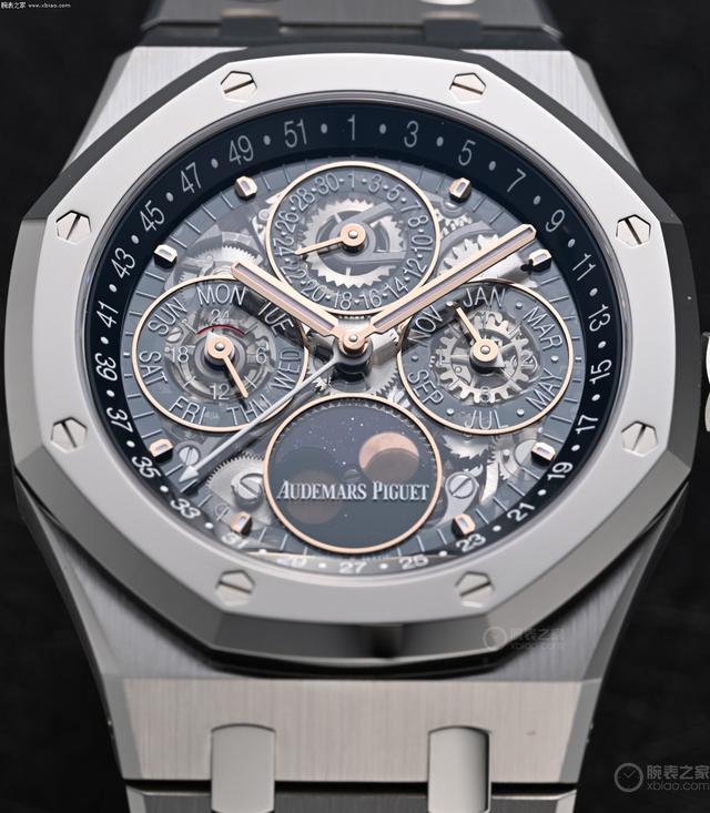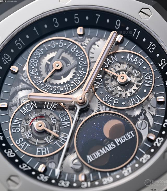 爱彼皇家橡树万年历26685镂空款,镂空面积弘大。