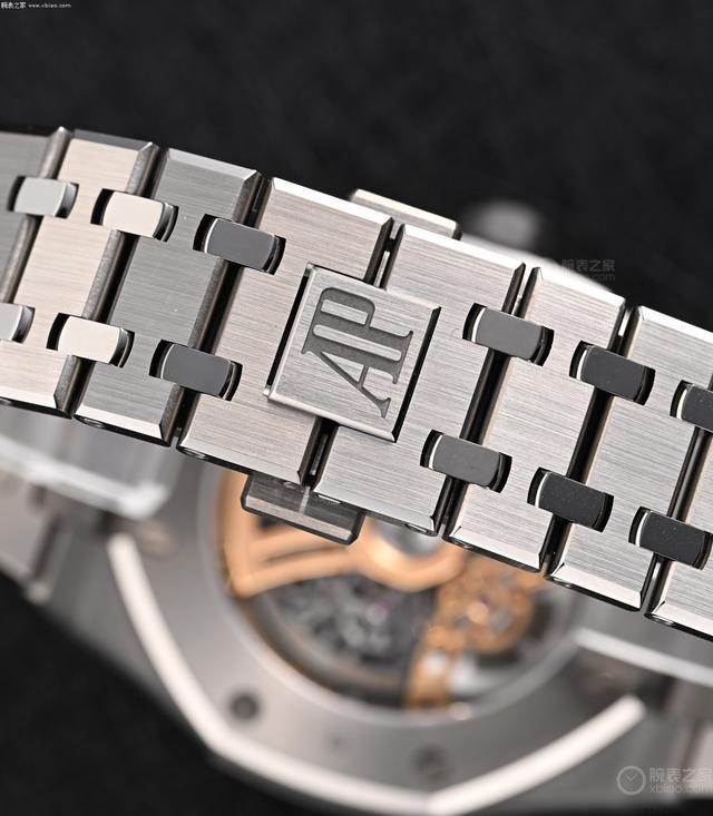 新款皇家橡树万年历26685镂空,尺寸和厚度,和老例款皇家橡树万年历26674一致(41毫米,厚9.5毫米),但镂空款的表壳材质,使用了钛金属,和金属玻璃的组合。钛金属表壳、钛金属表链,分量轻,适于指导,振振有词。而金属玻璃表圈,金属玻璃中段链节的使用,爱彼方面主如若出于,亮度和硬度的研究。