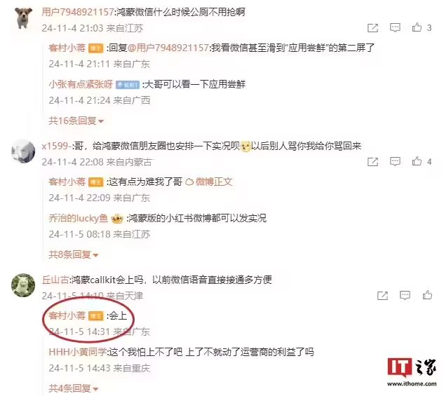 昨年 11 月,曾有网友在外交平台上商榷鸿蒙版是否会上 CallKit 的问题。