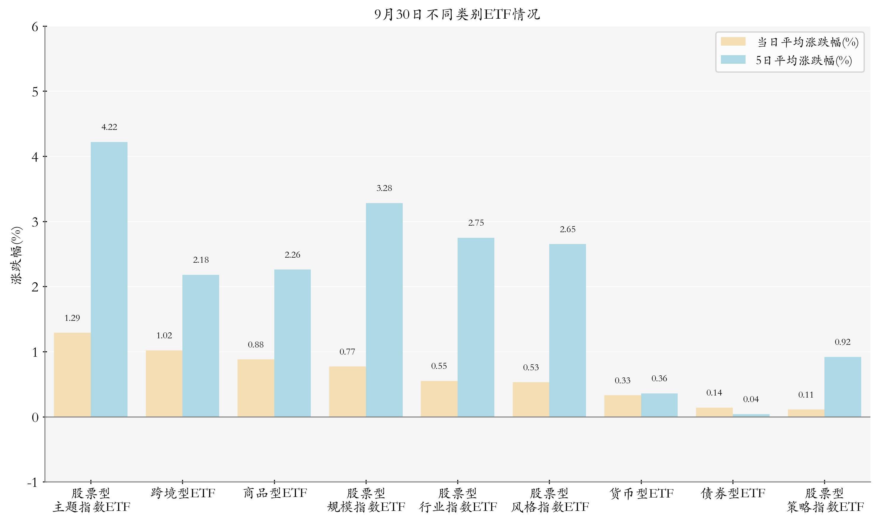 证据ETF基金的限度和涨跌幅绸缪得出不同分类情况下各样ETF基金的平均涨跌幅。