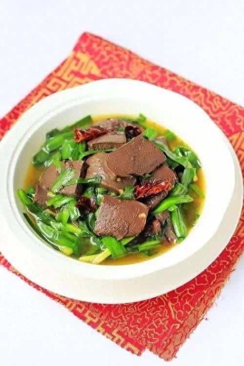 材料:韭菜 200克;鸭血 150克;鸡蛋 2个;生姜 1块(切片);大蒜 2瓣(切末);食用油 适量;盐 少许;生抽 适量