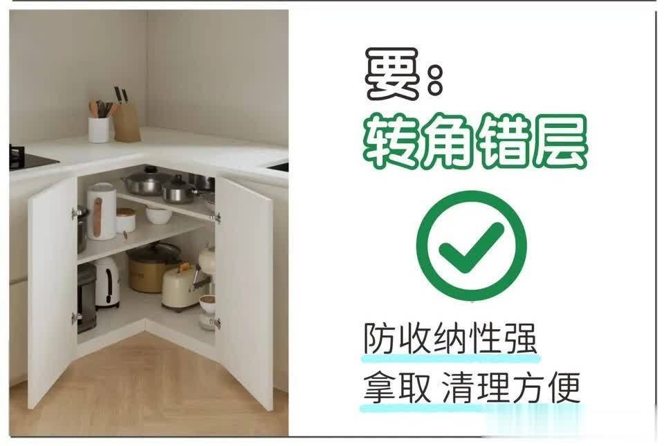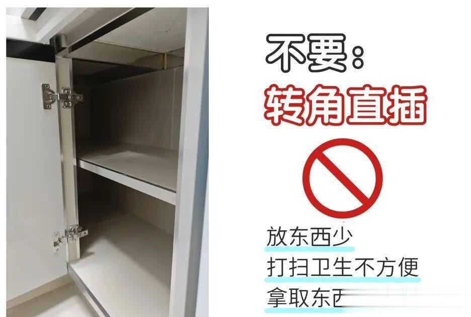 5. 不要转角直插商量:收纳空间小,拿取东西、打扫齐未便。