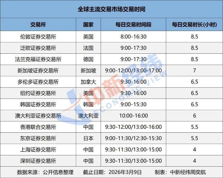 英国伦敦证券交游所、德司法兰克福证券交游所和泛欧证券交游所逐日交游时长达8.5小时;新加坡证券交游所逐日交游时长为7小时。